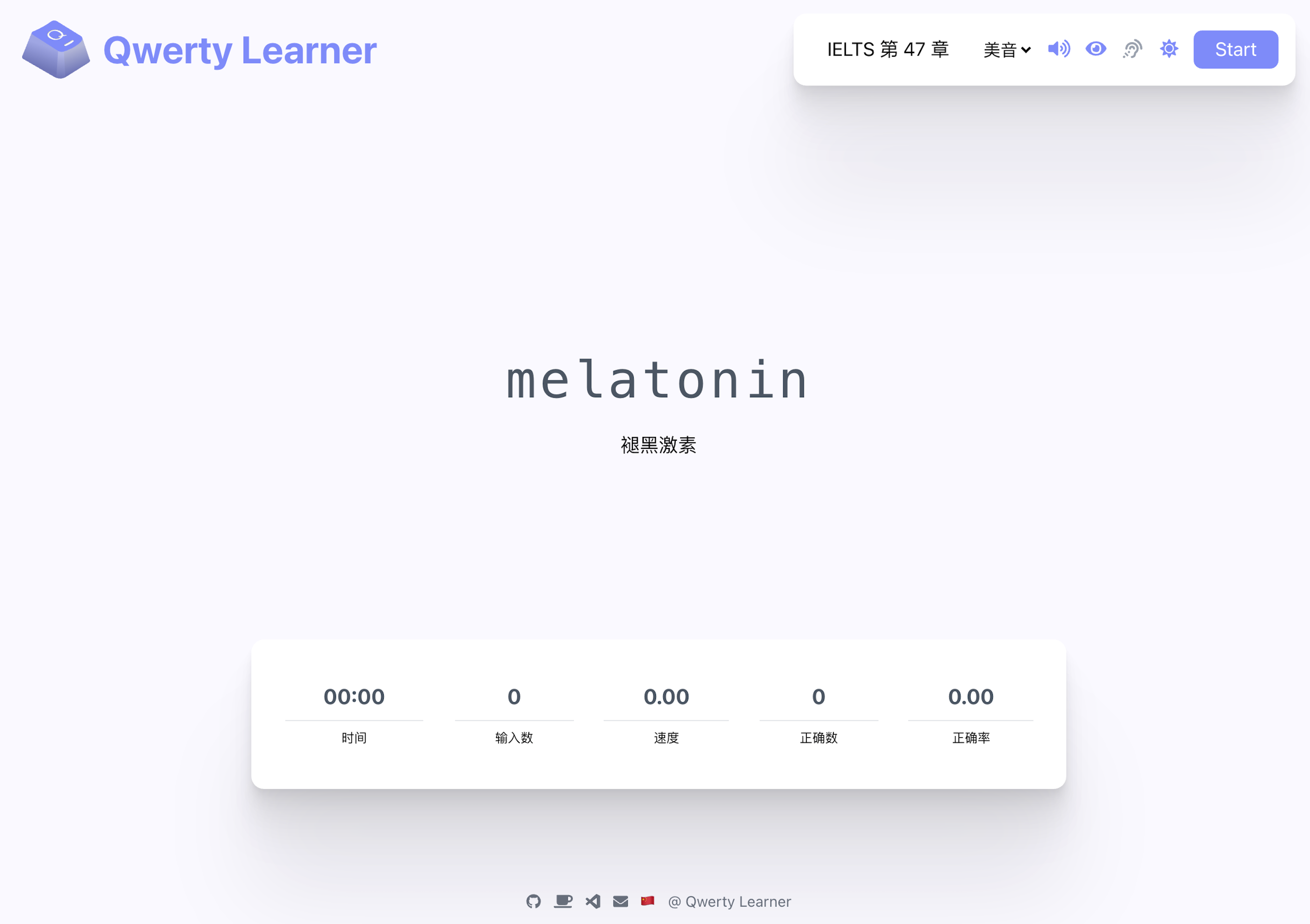 也是本项目的核心灵感来源Keybr 更多针对英语为母语的用户。在我使用 Keybr 练习打字时,觉得虽然生成的伪英语能够练习输入不顺畅的个别字母,但并不能提升非母语用户对单词的掌握,于是有了本项目。
